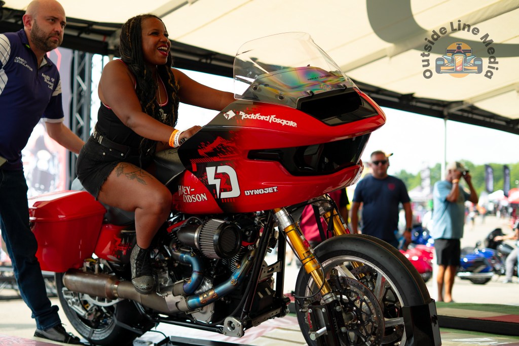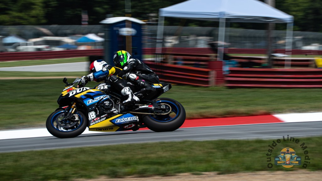 One of the coolest experiences that you could have done at Mid-Ohio was actually get on track. Yes, you read that right. There were a few different parade laps that were available to special ticket holders that let you take your personal bike onto the track. While not a hot lap by any means, it is a good time. But what if that isn’t enough for you. What if you are are someone that doesn’t want just the chance to be on track, but the prestige of lapping the track. Luckily for that person, there is a way to do just that! The girlfriend of one of the members actually did it. The Dunlop ECSTAR Suzuki Two-Seat Superbike Experience is your chance to experience a hot lap on the back of a racebike. All it requires is a donation to the Roadracing World Action Fund, a non-profit that looks to improve track safety with soft air barriers. In return for your donation, you get the chance to ride on a real race spec superbike. The Dunlop M4 Suzuki race bike piloted by retired racer Chris Ulrich is the closest you can get to the real deal. With reaching 150mph and lean angles that can only be achieved on a bike like this, this is the ultimate experience for fans of MotoAmerica.